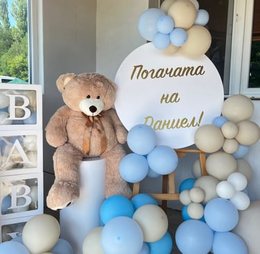 Създаваме декори, които допълват пространството и подчертават повода с внимание към детайла и балансирана естетика. Работим с подбрани материали, цветови палитри и концепции, съобразени с индивидуалните желания на клиента. Всеки проект е резултат от внимателно планиране, ясна идея и стремеж към хармония между форма, цвят и пространство.